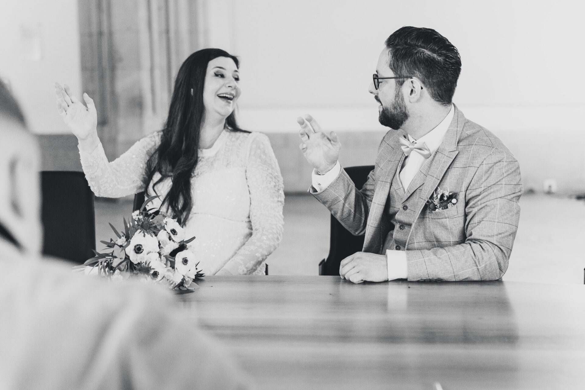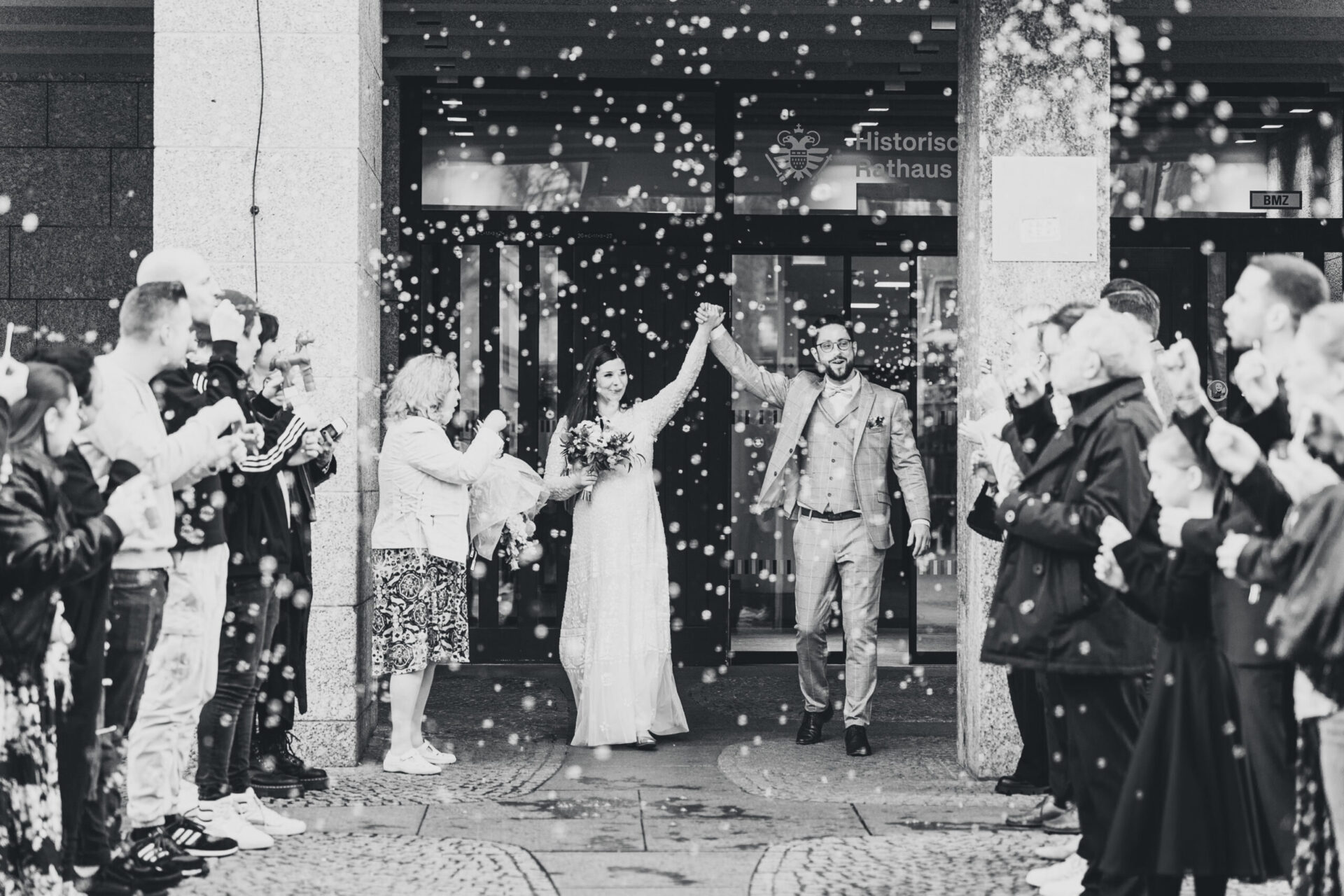 In meinen Augen bringt es nichts, eine feste Anzahl an Fotos im Vorfeld zu kommunizieren. Erst Recht nicht in einer Welt, in der Kameras über 20 Bilder pro Sekunde machen und ich euch in zehn Minuten 10.000 Fotos machen kann – natürlich ohne großen Mehrwert für irgendjemanden. Manche Hochzeiten sind in 800 Bildern erzählt, manche erst in 1.400 oder mehr. Deshalb bekommt ihr bei mir immer alle Fotos, jedes bearbeitet in Farbe und Schwarzweiß. Ganz gleich, wie viele es am Ende werden. Und keine Angst, bei einer Tagesreportage werden es selten weniger als tausend Fotos sein.